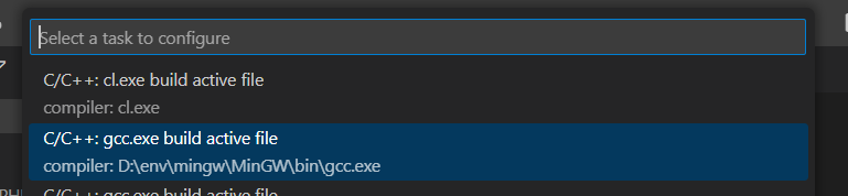 然后在”Terminal“菜单下点击”Configure Tasks...”子菜单。或者ctrl+shift+p调出快捷方式输入configure tasks并选中,之后在如下界面选中图中所选回车生成一个“.vscode"的子文件夹,在这个子文件夹下自动创建一个”tasks.json“的文件