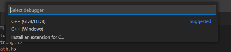 随后出现的弹出框中选择“C++(GDB/LLDB)”,再选择”gcc.exe“。点击如下窗口所选即可进行调试代码